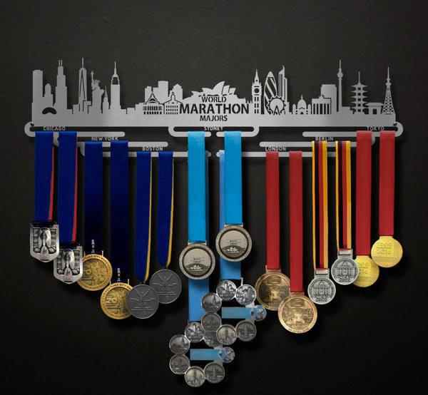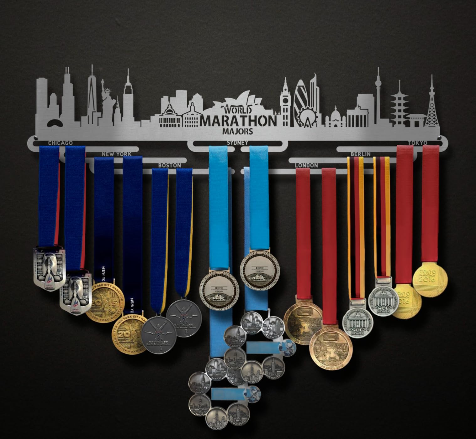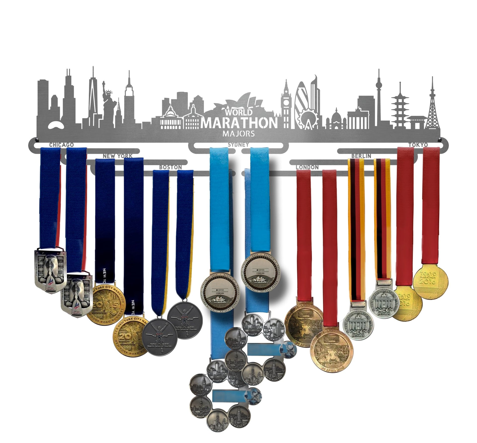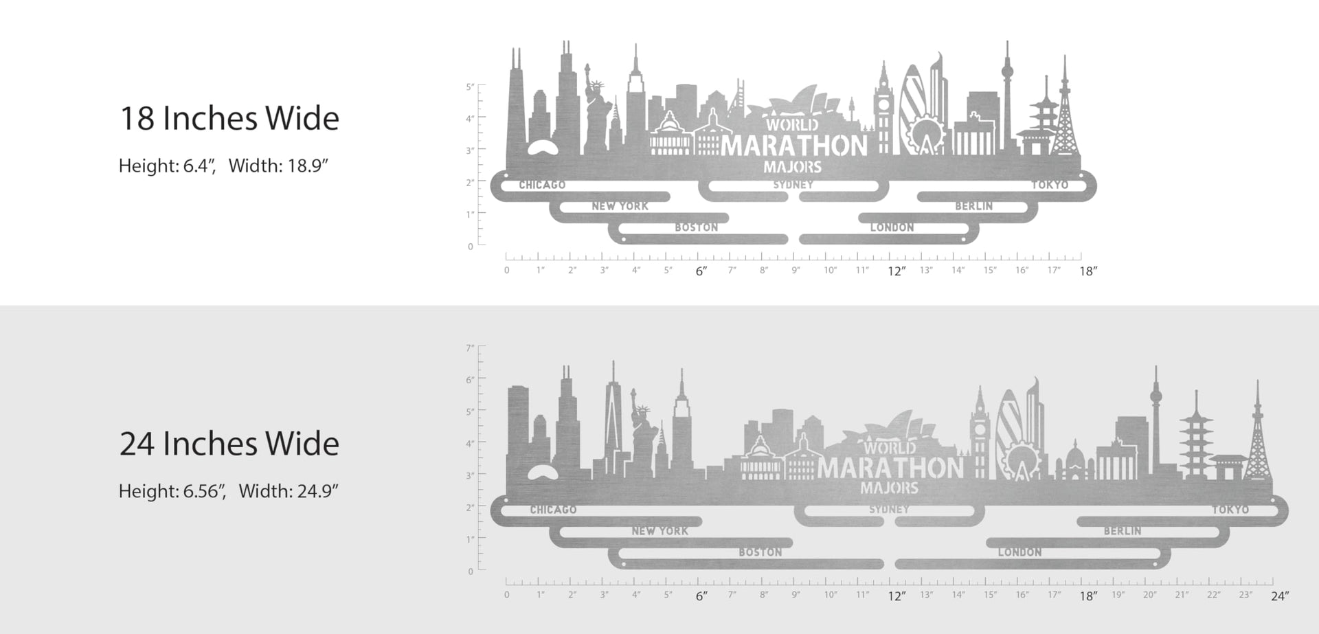 Are you one of the millions of athletes around the world that takes their hard earned award medals and throws them in a pile at the bottom of a drawer? Or maybe you hang them from the corner of your bedroom door, but the constant clanking and not being able to close your door properly is wearing you down?! The solution to your problem is here! Hang all of your hard-earned marathon, half-marathon, 10k, 5k, sports, and various other medals from this stylish, sleek, high quality Allied Medal Hanger. Looking for a little extra motivation for that next training session? Every time you look at your medal hanger showing off all your accomplishments, you will be reminded to stay focused - they will give you the extra boost you need! Each Allied Medal Hanger is laser-cut from strong, high quality 11-gauge brushed stainless steel for an elegant and timeless appearance. We proudly produce everything at our family-owned fabrication facility located in Redmond, Washington, USA out of USA-made Stainless Steel!