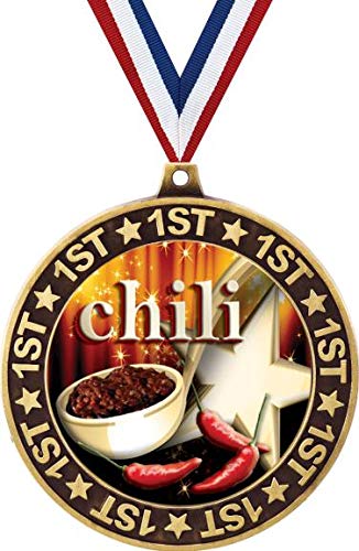 - Q: What is the size of the Chili Pot 1st Place Medal? A: The Chili Pot 1st Place Medal measures 2.75 inches in diameter.