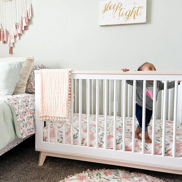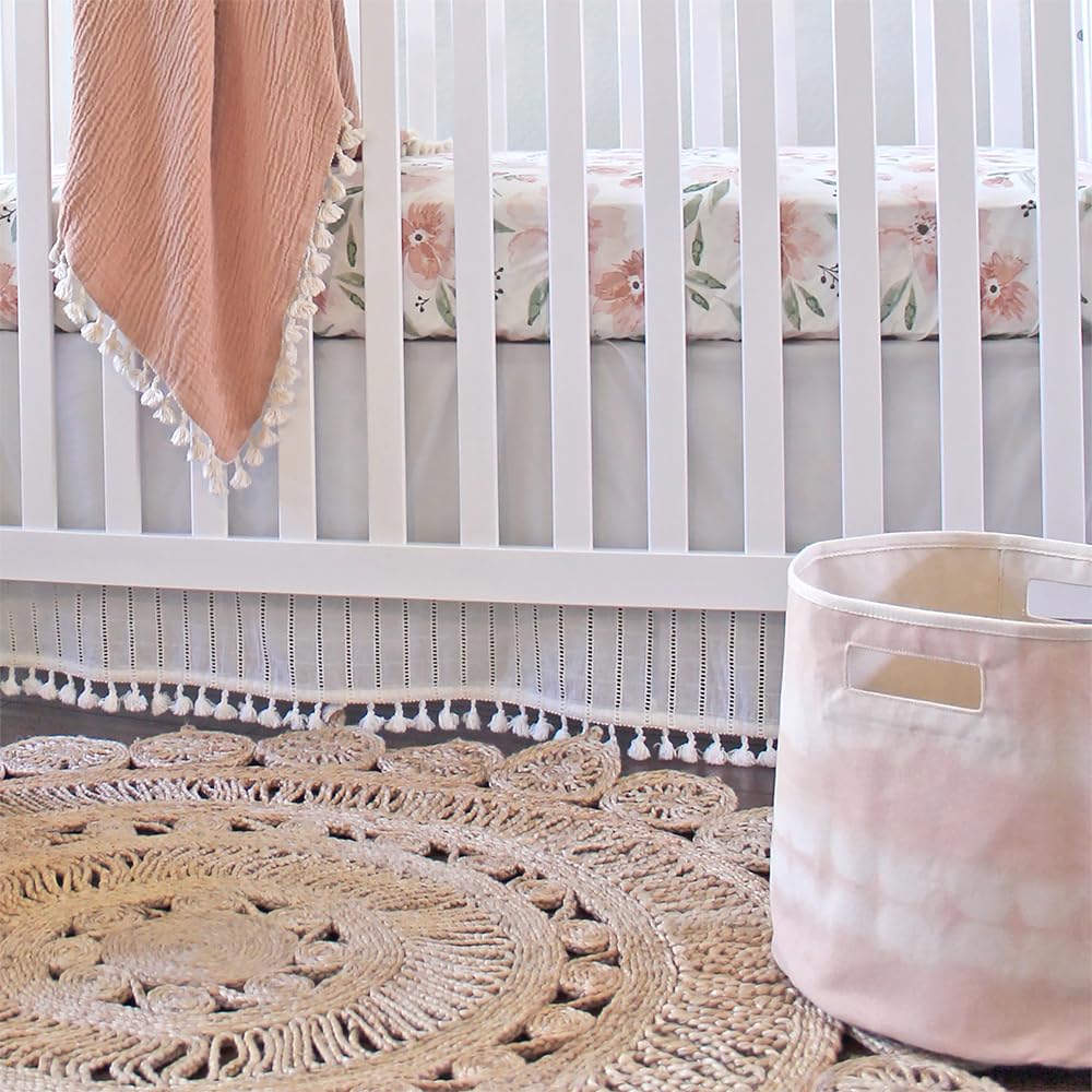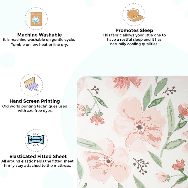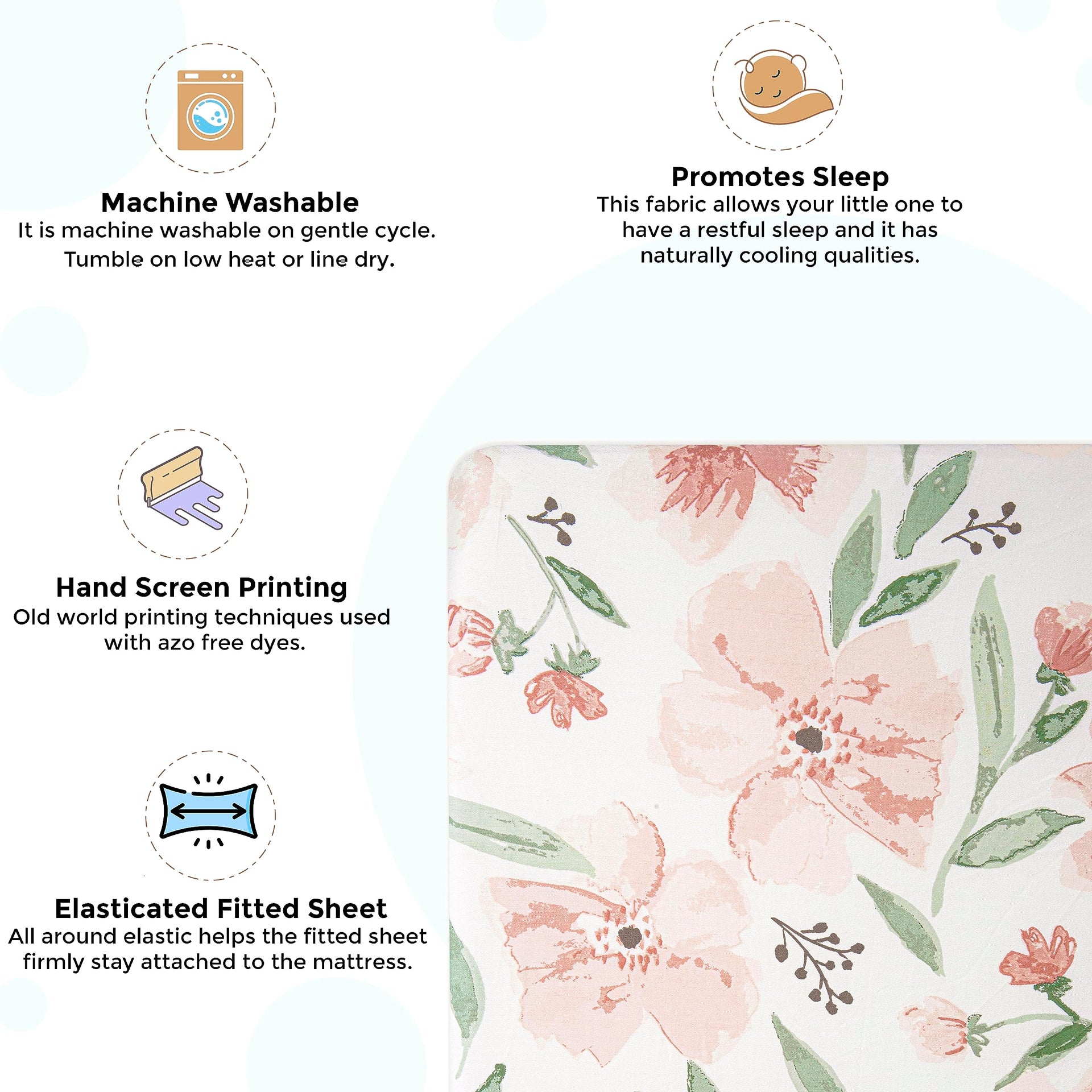 Dress your babys crib in 100 cotton sateen Printed to portray the essence of a watercolor we painted in-house, our crib sheets are available in a variety of designs and the perfect way to add whimsical accents of color and pattern to your nursery cotton sateen is breathable and softens with every wash Packaged in a fabric bag you can reuse to keep your baby essentials neat and tidy Hand screen printed using AZO-Free dyes Thoughtfully and ethically sourced