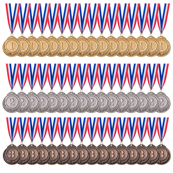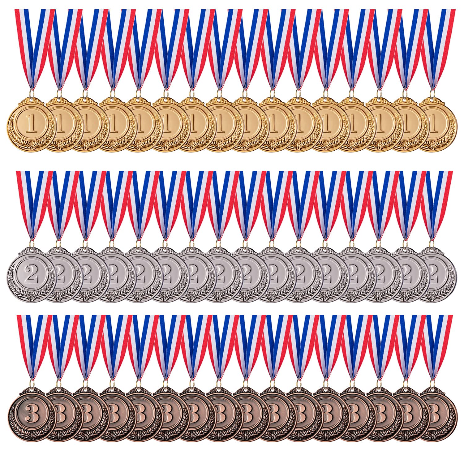 48 Pieces gold Sliver Bronze Metal Medals Winner Award Medals Prizes for competitions, Party 48 Pieces winner medals: Package includes gold, silver and bronze medals, 3 kinds of medals, each style for 16 pieces, suitable for preservation, or as a good commemoration ItAs a good gift for children: Its great for school sports day, sporting events, Olympic theme parties, or any competition that needs to be rewarded Fit as a reward and encouragement to give student, children Specifications: Quantity: 48 pieces Medals color: golden, silver and bronze Material: zinc alloy metal and ribbon Ribbon length: approx 39 cm 156 inch Winner medals diameter: approx 5cm 2 inch Package includes: 16 x gold medals 16 x Silver medals 16 x Bronze medals