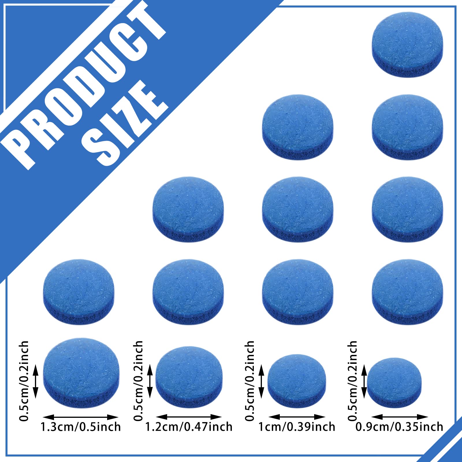 Features: Protect billiard pool cue: The pool stick tips replacement kit can strengthen and protect the end of the pool stick, protecting it from splitting, and you can not only extend the lifespan of the stick, but also achieve better billiard game experience during the matches Lightweight and portable: You may take the box outside, however, when you just need 2 or 3 of the snooker cue tips, you can just put them in your pocket or purse, are lightweight and wont take up much space Specifications: Size of cue tips: approx 9 mm 035 inches, 10 mm 04 inches, 12 mm 047 inches, 13 mm 05 inch in diameter and 5 mm 02 inch in thickness Size of storage box: approx 74 x 47 x 2 cm 291 x 185 x 079 inches Material of cue tips: artificial leather Material of storage box: plastic color: as picture shows Package includes: 20 x Billiard pool cue tips 1 x Storage box Notes: Manual measurement, please allow slight errors on size The color may exist a slight difference due to different screen displays Small items, keep away from little kids to avoid choking risk