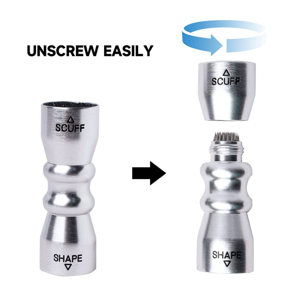 The gSE 3-in-1 pool cue tip tool is mainly made of brushed aluminum, which includes shaper, scuffer, aerator, holding chalk better and helping to avoid miscues The tapper is useful for contour the tip to the desired dome curvature slightly breaking up the aerator, the surface will hold more chalk the scuff side only needs to simply roughen up the surface of the tip and chalk will adhere to the tip, for better ball control It measures 25 inches high and 085 inches wide, silver, small and convenient to carry, a perfect gift for players of all levels