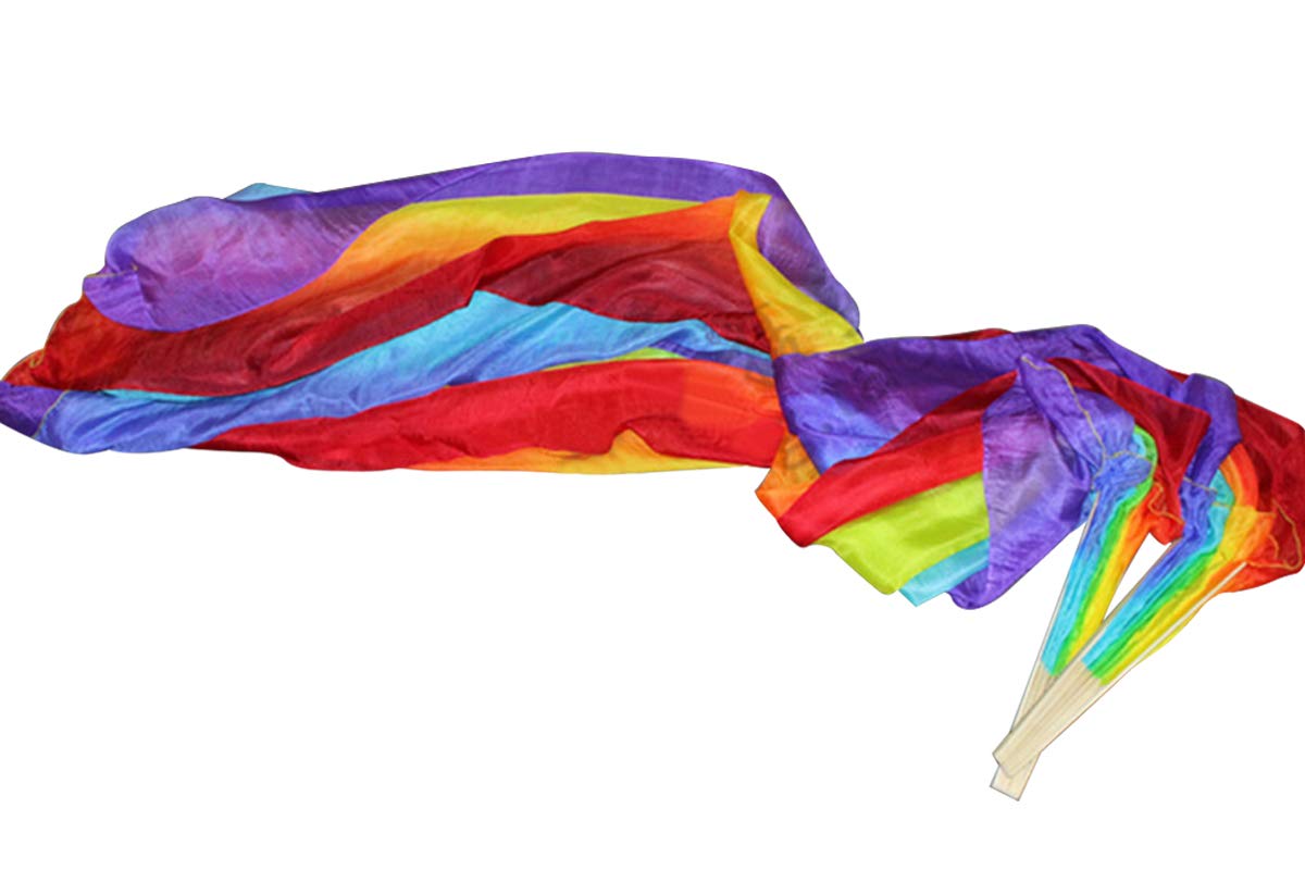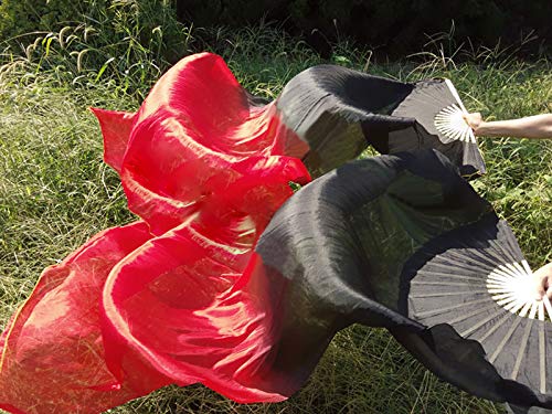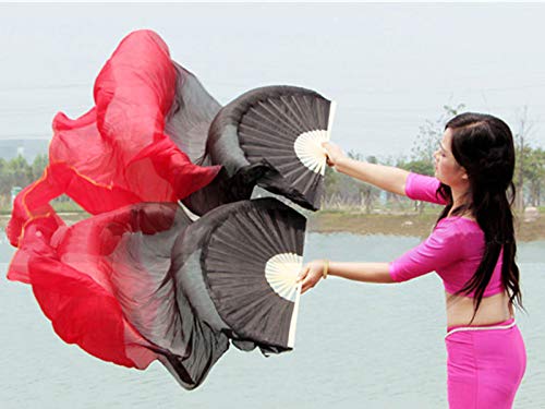 Kikigoal 1 Pair(Leftright) Women Real Silk Belly Dance Fan Veil, Length 180Cm Width 90Cm (Gradual Red)
