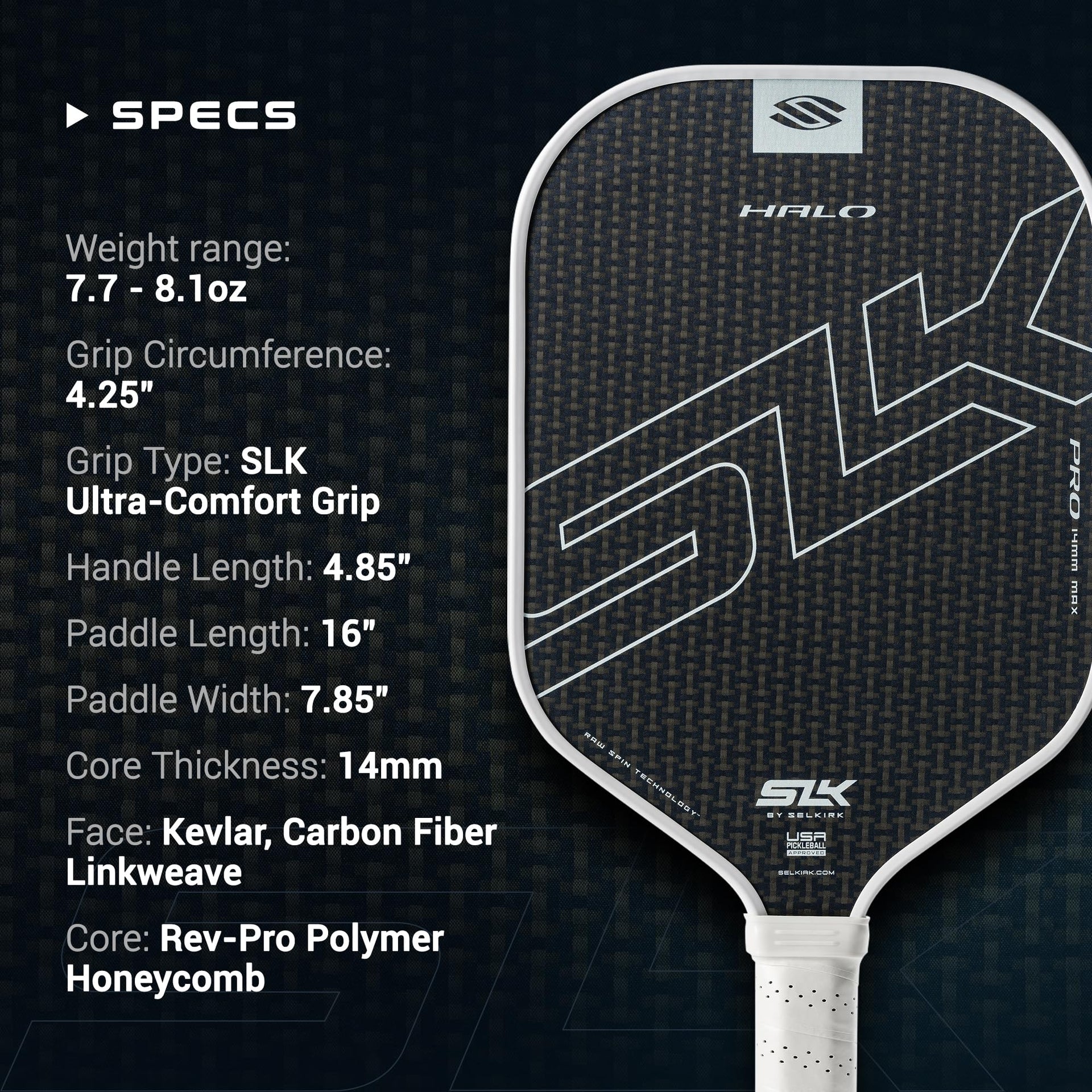 Selkirk Slk Halo Pro Max Pickleball Paddle | Raw Carbon Fiber Pickleball Paddle With A Rev-Core Power Polymer Core | The Pickleb