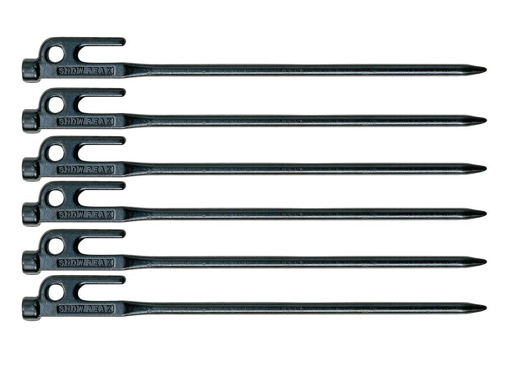 - Q: How many stakes are included in the package? A: Each package of Snowpeak Solid Stakes includes 6 individual stakes.