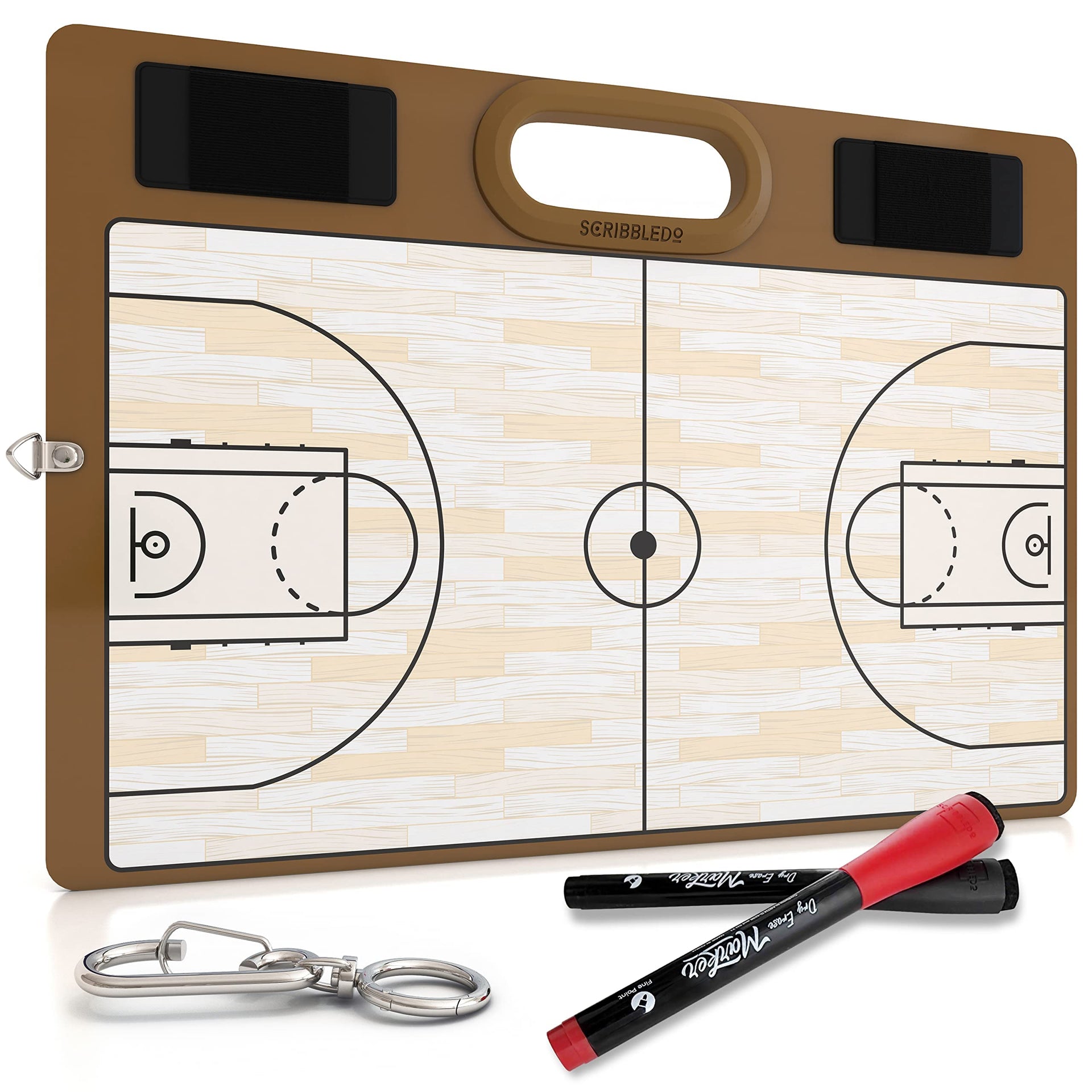 ROBUST & HIgH QUALITY - Our basketball coaching board has a smooth surface for easy writing and wiping, its waterproof, durable, long-lasting and high quality Unlike other basketball clipboards that can be ruined by rain, dust, sweat or wear and tear DOUBLE-SIDED DESIgN - This dry erase basketball coaching board is double sides with a full court on the front and a box score line up on the backside to help coaches get a clear picture of the full basketball play board ULTIMATE cOAcHINg TOOL - Our basketball clipboard dry erase for coach comes with a high-quality metal chain ring carabiner to allow for a 360A swivel, making it easy to communicate, organize and optimize game plans and strategy throughout the game ERgONOMIc DESIgN - Our extra-large basketball accessories whiteboard for coaches comes with 2x dry erase markers, built-in marker holders and a strong handle for easy carrying VERSATILE USAgE - You can utilize this basketball score book for coaches to strategize for multiple sports, including softball, tee-ball, kickball and one-on-one training sessions, making this sports board particularly convenient for multi-sport coaches