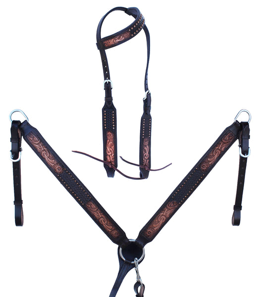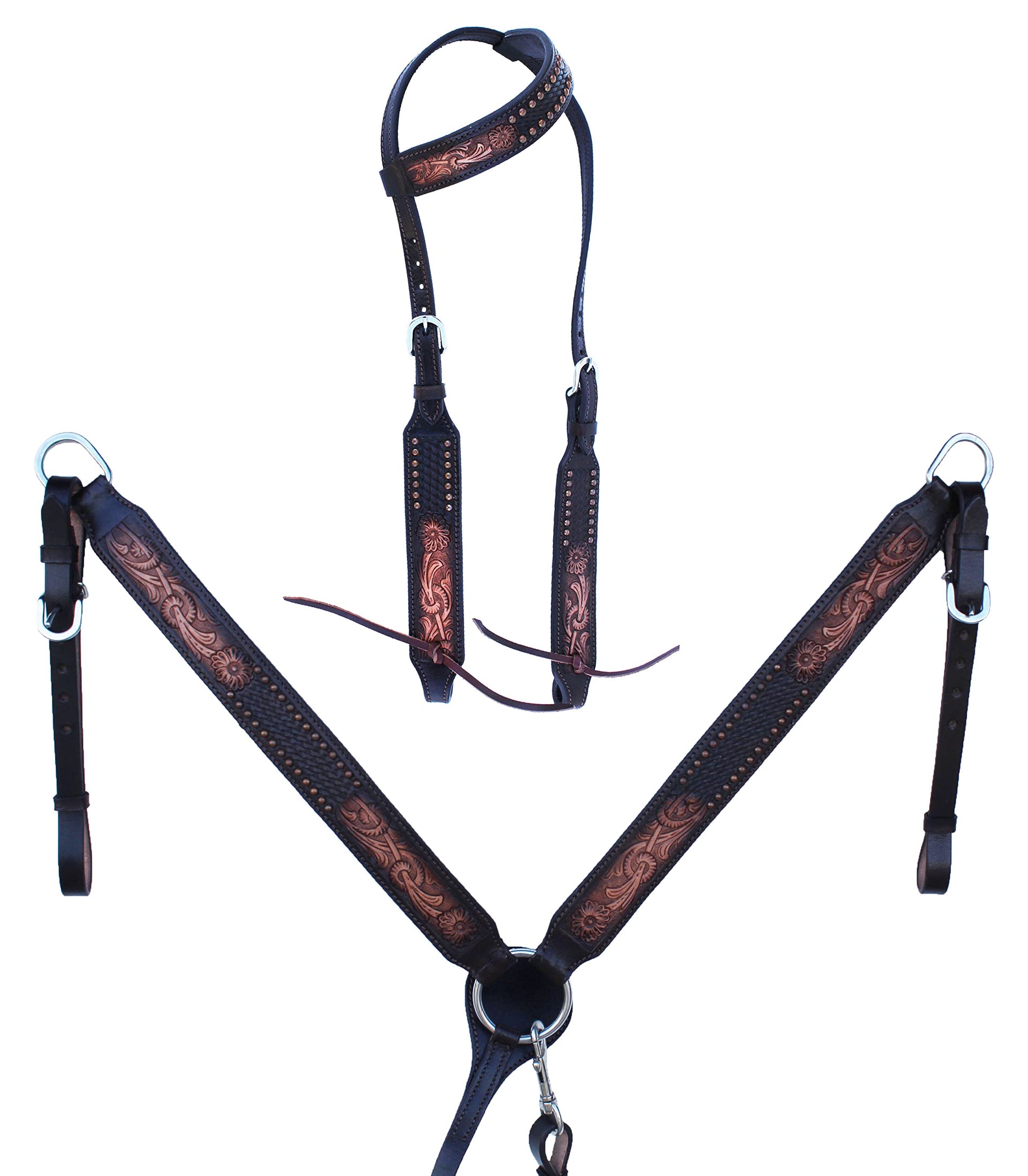 - Q: What is included in the tack set? A: The tack set includes a headstall and a matching breast collar, both beautifully accented with hand-tooled and painted designs.