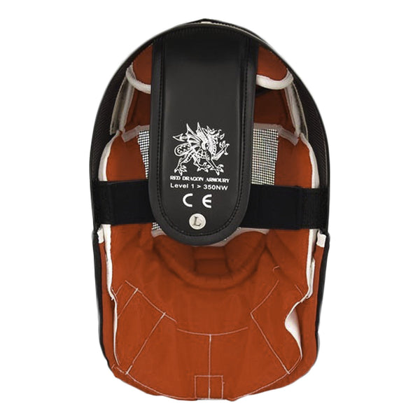 Red dragon's own hem a coaching mask comes to you at a fraction of the cost of other coaching masks on the market. This fantastic mask features a black mesh and removable (washable) Red liner. The bib on this mask is rated at 350 newton's. Size large - 30 3/4 inches around mask; 26 inches - 27 1/4 inches around face.