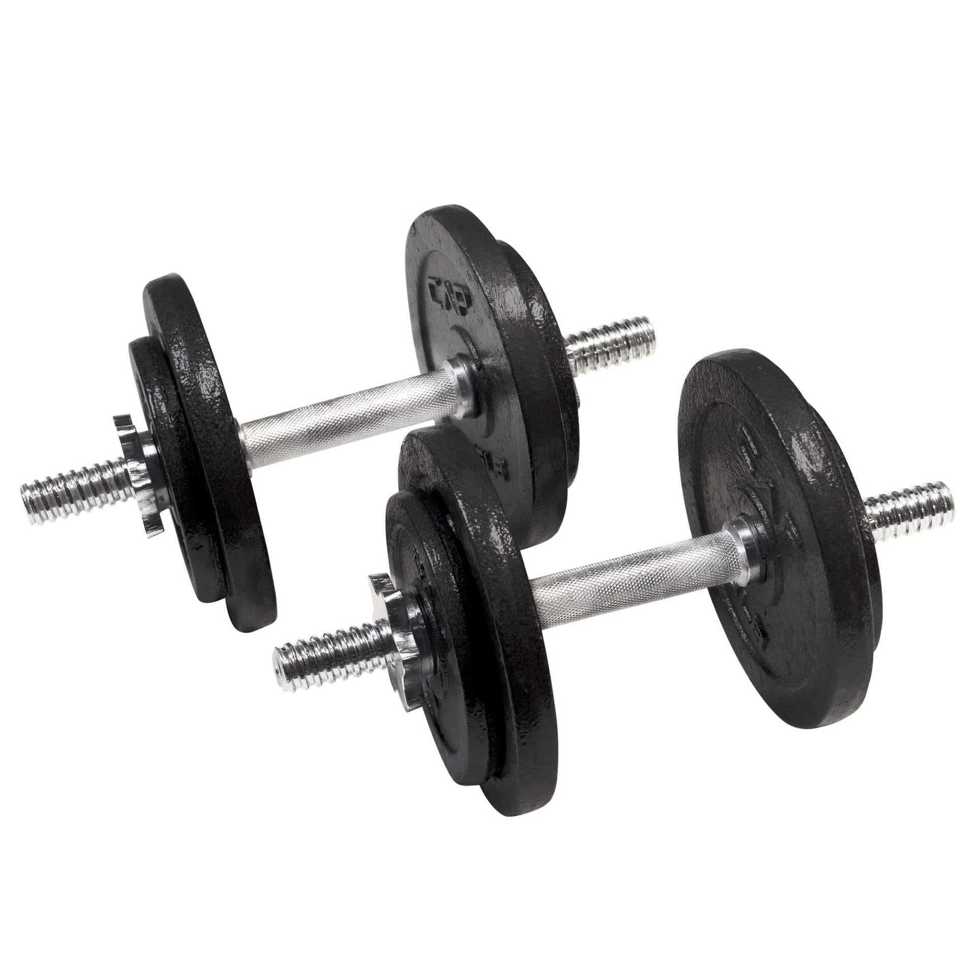 - Q: What is included in the CAP Barbell 25-Pound Adjustable Dumbbell Weight Set? A: The set includes two 14-inch dumbbell handles, four 3-pound plates, four 7.5-pound plates, and four star-lock collars.
