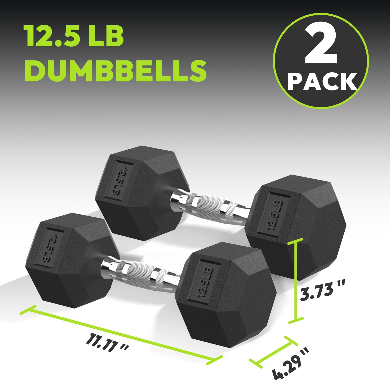 Hex Dumbbell Rubber Encased Dumbbell Strength Training Hex Dumbbell, Hand Weight For Workout & Exercise/Pair Of 12.5 Lb