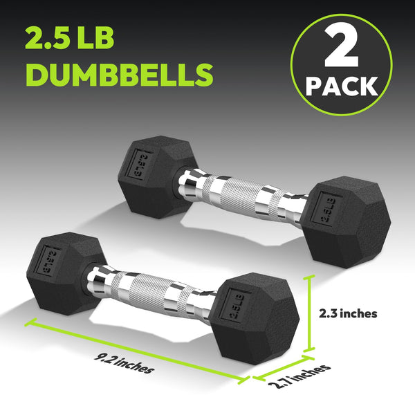 Hex Dumbbell Rubber Encased Dumbbell Strength Training Hex Dumbbell, Hand Weight For Workout & Exercise/Pair Of 2.5Lb