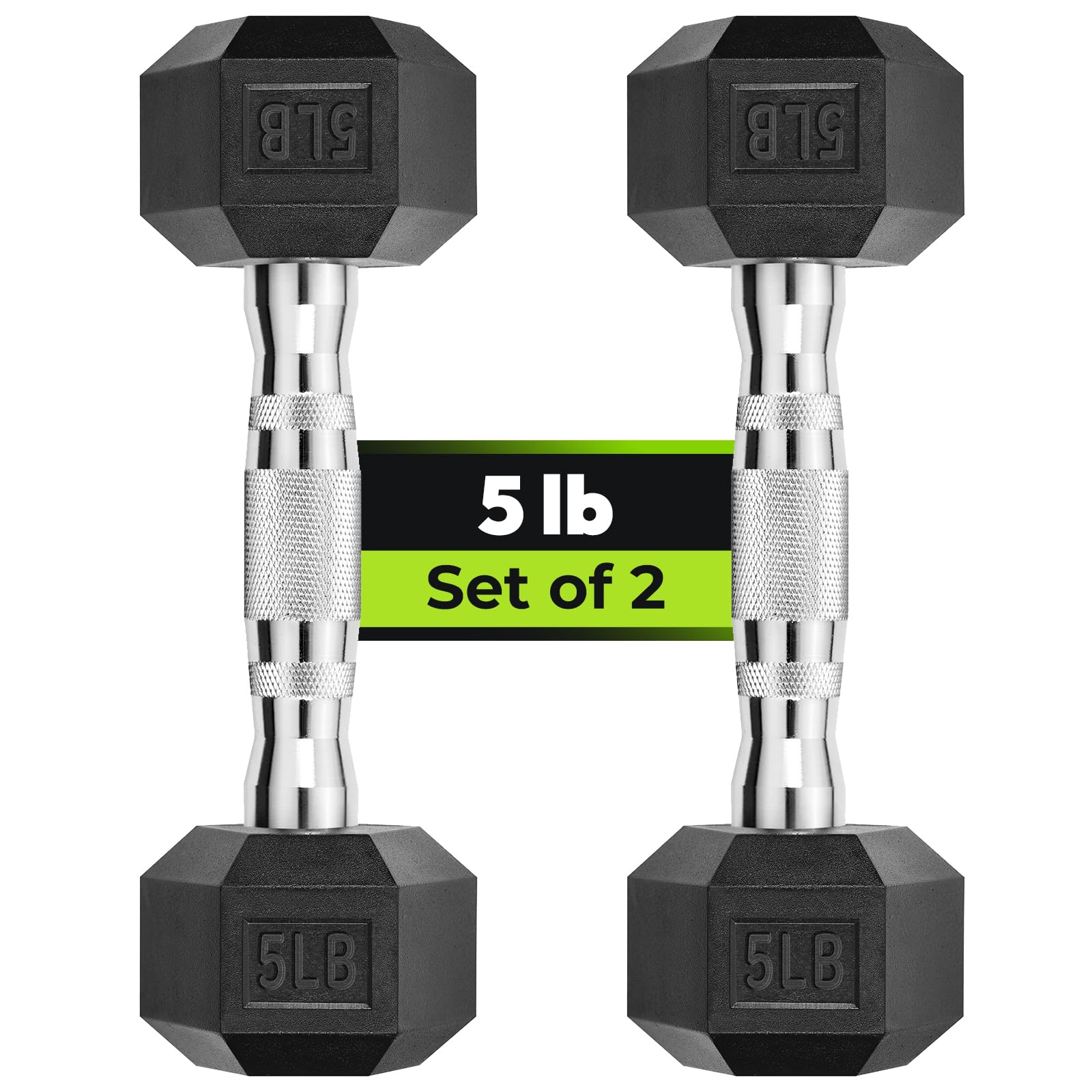 Hex Dumbbell Rubber Encased Dumbbell Strength Training Hex Dumbbell, Hand Weight For Workout & Exercise/Pair Of 5Lb