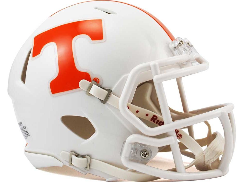 Based on one of the most popular on-field designs, this collectible Speed Mini football helmet is made specifically for fans of the Tennessee Volunteers. At approx. 5.5 in. tall, this half-scale display helmet is perfect for all football fans and great for autographs. The helmet features a mini size Speed shell, the S2BD-SW-SP face mask, a 4-point chinstrap, and official paint and decals. The perfect collectible or gift!