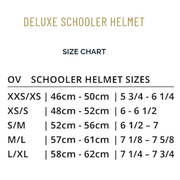 OVATION DELUXE SCHOOLER HORSE RIDING HELMETThe lightweight, low-profile Ovation Deluxe Schooler Helmet has an easy-adjust dial for a snug fit. It also features a rubberized finish, removable washable liner, removable breakaway visor, and exclusive YKK[R] adjuster clip and buckle designed to stay off the rider's face for comfort.Minimum manufacturer recommended age: 12+ years.OVATION RIDING HELMETSOvation riding helmets come in styles for use in schooling or in the show ring. All our Ovation riding helmets are certified to ASTM or SEI ASTM standards. Riding helmets are not gender specific, but there lots of option both for men and women.Ovation riding helmets have low profiles, are lightweight, with many having features that allow for ventilation as well as sweat absorbtion. Because a good fit is important in a riding helmet, some of our Ovation riding helmets offer dial adjustment as well as harness adjuster clips. Many styles feature removable visors.