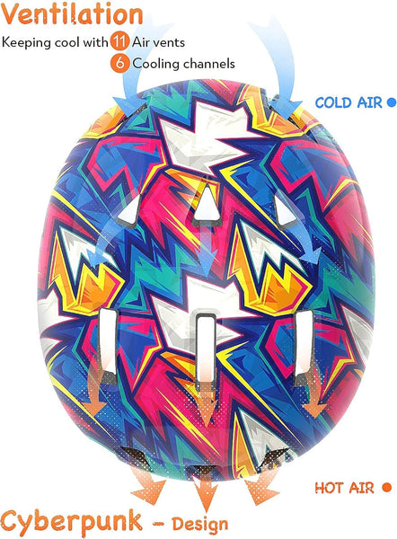 Toddler Bike Helmet for Boys and Girls, Adjustable Kids Helmets from Infant/Baby to Children with Magnetic Light, 1/2/3/4/5/6/7/8 Years Old (Cyberpunk, XS)