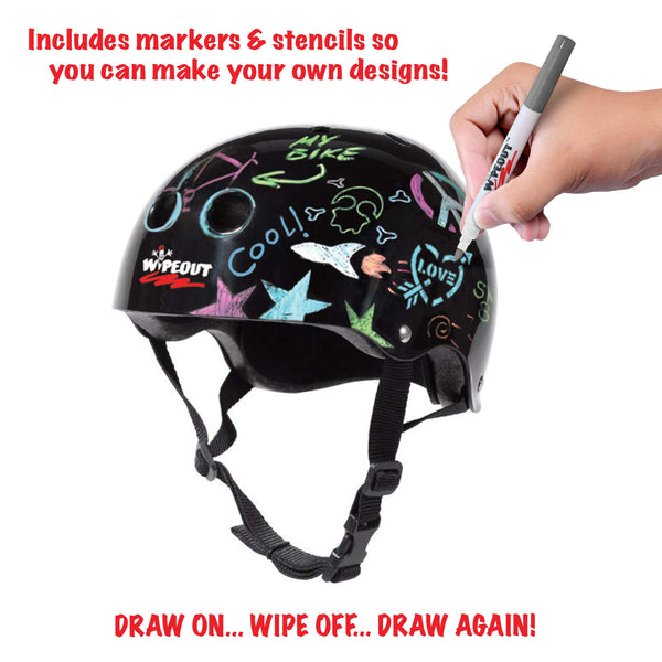 Wipeout Dry Erase Kids Helmet For Bike, Skate, And Scooter, Black, Ages 8+