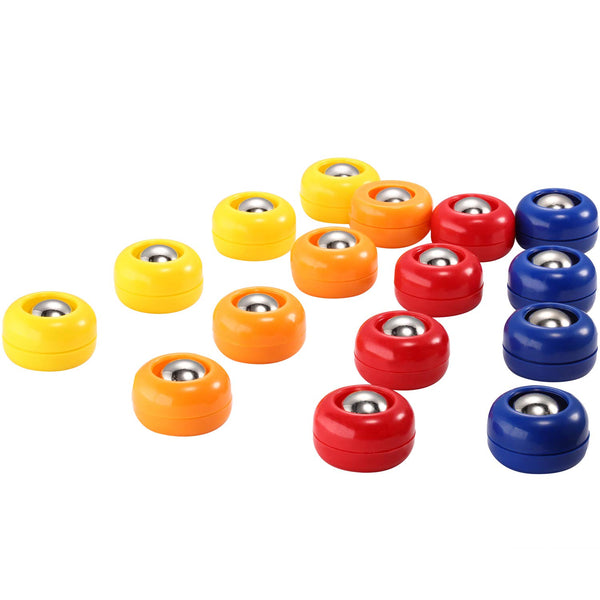 16 Pieces shuffleboard replacement pucks tabletop equipment rollers set shuffleboard curling accessories Vibrant color and ample quantity: The shuffleboard accessories are available in different colors, 16 pieces are suitable for 4 people to play and different colors provide easy recognition Alloy ball bearings: The tabletop equipment roller slides smoothly over the playing surface of the game to mimic the real curling and shuffleboard for maximum fun And plastic shell ensures it will not break easily, bringing you long-lasting fun Specification: Size: 098 inch in diameter and 061 inch in thickness Material: ABS and alloy color: as the picture shown Package includes: 16 x Shuffleboard replacement pucks Warm note: Small parts, not for children under 3 years old Suit to people aged over 12 years old