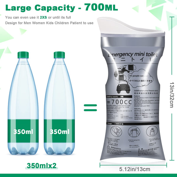 OUMEE disposable bag is unisex design for Men Women Kids children Patient even though enough for a whole family to use in any emergency like a traffic jam, illness, vomit, and other needs It can solve the problem without the toilet or avoid physical contact with dirty toilets How does it work The disposal pee bag is equipped with eco-friendly SAP water-absorbing polymer substance that can instantly absorb urine, vomit, or other liquid waste into gel within 45 seconds, finally turns it into odorless, spill-proof gel Descriptions: Material: Impervious PE material(filled with water-absorbing polymer substance) capacity: 700 ml Size: 128 x 512 in Features: Eco- friendly & safe material Large capacity of 700 ml Instantly absorb liquid within 45 seconds Professional design with unisex design for anyone(adultchildrenelderly) to use The well-designed buckle and card slot are more stable to make you operate with one hand Designed with a sealed zipper that locks in liquids, no leaking, prevents leaks and prevents odors Foldable and compact enough to fit in your pocket Package Included: 8122024Pack Disposable Urine Bags