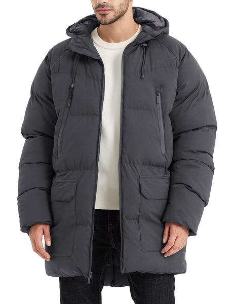 - Rejork Men s Long Winter Coat Hooded Warm Quilted Jacket Water-resistant Cold Weather Parka Grey L