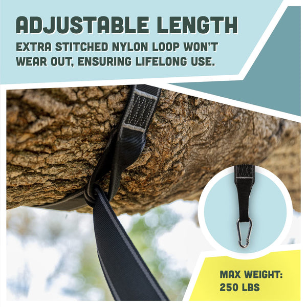 SWING SET ACCESSORIES: Squirrel Products presents this pair of outdoor nylon tree swing hanger straps! Set them up on a tree with a new swing and then let the kids play. | OUTDOOR FUN: This jungle gym addition or playset accessory is perfect for kids. You and your children will have so much fun! It's a great way to keep children active outdoors. | QUALITY EQUIPMENT: This heavy-duty nylon hanger strap set is a great DIY replacement for frayed rope and is built to endure. Maximum weight limit: 250 lbs. | PLAYSET ADDITION: Hang in the woods on a tree, swing set, playground, or on your porch. It's great to add to monkey bars, trapeze swings, and swinging chairs. Do it yourself! All you need is a ladder. | This product is intended for single family residential use only. Not intended for commercial, daycare, apartment complex, or multiple dwelling unit development