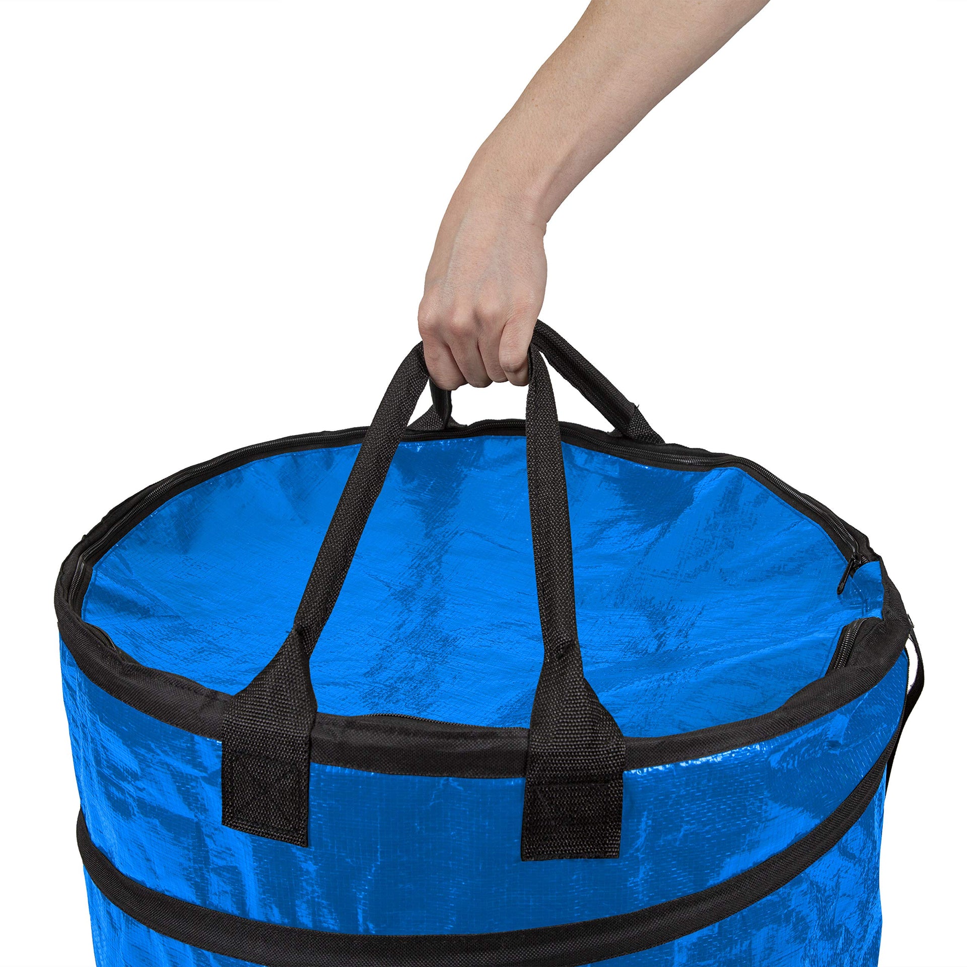 Bring our collapsible cans with you on your next outing and find out just how convenient they are! Use them to hold recyclables or trash at the campsite, while tailgating, or for backyard BBQs. Bring them to the beach to carry towels, toys, and balls. With two padded handles it can be a freshmans best friend when it comes to laundry. Lightweight and portable, these cans compress down from 24 to 3 .