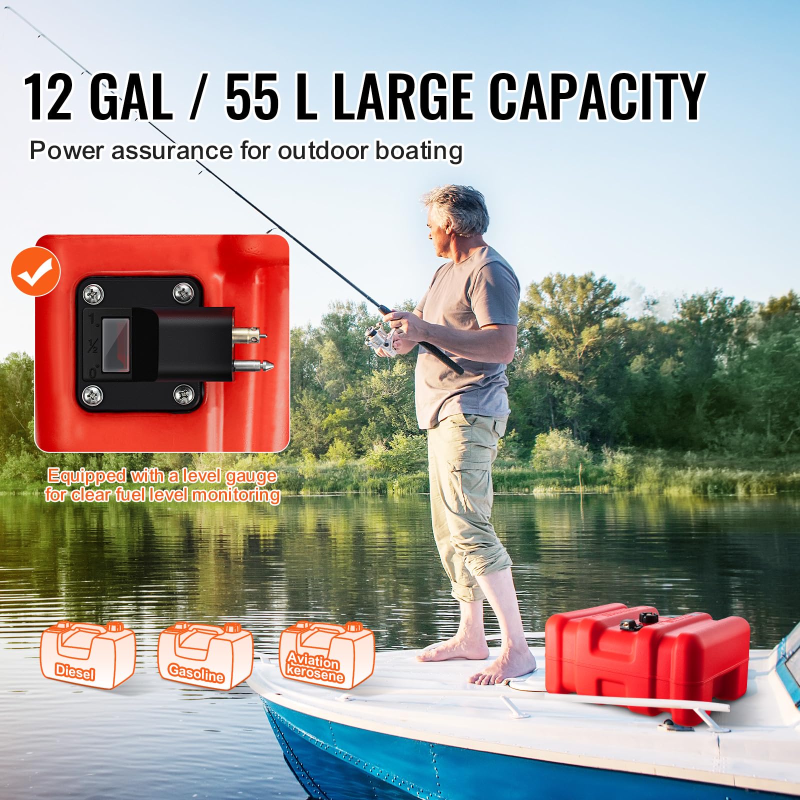Specifications Item Model Number: LD-YG-P24 Tank Capacity: 6.34 gal/24L Material: High-Density Polyethylene Product Weight: 6.8 lbs/3.1 kg Product Size: 18.1'' x 12.8'' x 10.2''/460 x 325 x 260 mm Package Content 1 x Marine Transfer Tank