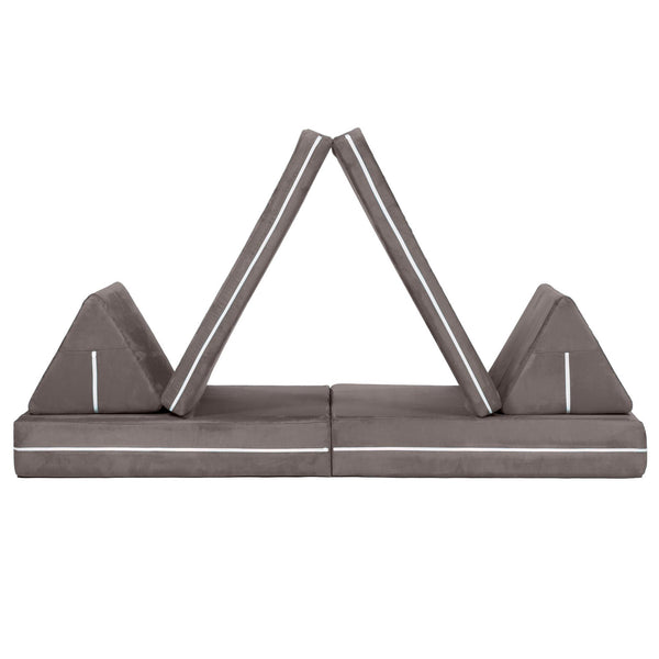 Highlights:1.INTERACTIVE INDOOR PLAYGROUND - Transforming foam play system for kids. Can be configured into a reading bench, playhouse, fort, rocket ship, tunnel, slide, and more! The Zipline PlayScape has so much potential for fostering creativity and imagination2.BUILT KID-FRIENDLY - Provides a soft, low-to-the-ground bed for sleepovers and naptime. A perfect playroom addition that inspires imagination and play. There are no sharp corners, abrasive zipper teeth/pull tabs, or handles for little arms to lock into3.MACHINE WASHABLE - Soft, polyester, microsuede covers are removable and machine washable. The covers are built with an internal zipper for an attractive, kid-safe design4.INFO | DIMENSIONS - Created with 3 and 6 supportive polyurethane foam cushions (both hinged in the center allowing them to be folded and stacked) and triangular back supports. Dimensions: 66 x 30 x 3 / 66 x 30 x 6 (Top/Bottom Cushions), 12 x 12 x 12 (Triangles)5.1 YEAR WARRANTY | MADE IN USA - Includes 1 year warranty. If you have any issue with your product, please contact customer service. Made proudly at our facility in Atlanta. Cushions are vacuum compressed to reduce shipping costs and environmental impactDetails:The Zipline PlayScape was created with active and imaginative play at heart, but its comfy cushions make for a cozy reading or lounging spot for kids, too! It isdesigned to inspire the imagination with the ability to create caves, pirate ships, houses, tunnels, and more! Make a play castle complete with a bastion and slides; create obstacle courses to climb on, jump off, and explore — the Zipline PlayScape will keep your kids occupied for hours on end.