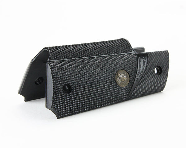 These models of Pachmayr signature grips also feature the patented full wrap-around design, are also made from rubber specially formulated for use on semi-automatic pistols, but are supplied without backstraps so they can be used on pistols such as the Government .45 models that utilize grip safety mechanisms.
