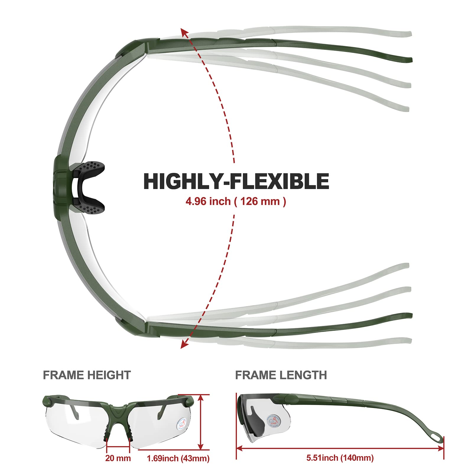 Xaegistac Shooting Glasses With Case Anti Fog Hunting Safety Glasses For Men Women (Clear Lens-Green Frame)