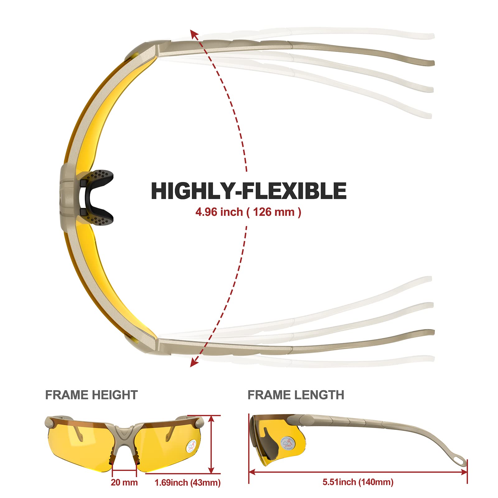 Features 1. Strong and durable polycarbonate lens keep your eyes from harmful UV radiation, and other peripheral threats. 2. Light weight frame with comfortable rubber nose pieces, you don't even remember you are wearing safety glasses. 3. Anti fog and resist scratches shooting glasses provide excellent peripheral vision. 4. Ideal for work and play, outdoor activities such as shooting,fishing,hunting,hiking,cycling, or woodworking and yardworking, anywhere you need protection for your eyes, Great for Men and Woman. 5. No need to buy a extra glasses case to store or protect your glasses, they have already included a hard shell case with plastic hanging hook for carrying purpose, you can attach it to your backpack or beltloop if needed. 6. We guarantee you 100% refund if you are not satisfied with our products. What is in the box 1x XAegis safety glasses 1x Cleaning cloth 1x Hard shell carrying case