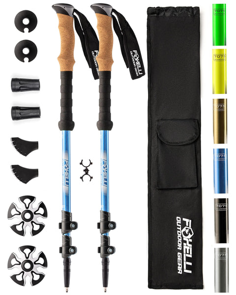 go the Extra Distance and get There Faster, All While Exerting Less Energy Introducing Foxelli Aluminum 7075 Trekking Poles that are Specially Designed for Maximum comfort and Safety Searching for one-size poles that the whole family can use Hoping to burn more calories while walking or hiking Want poles that reduce the impact on your joints and help alleviate the weight youAre carrying Tired of using poorly made, cheap poles that arenAt durable to withstand years of use Foxelli Aluminum Trekking Poles Meet All Your Hiking Needs, with their Ultra-Light Design & Natural cork grips Easily and quickly adjust polesA length to fit adults or children Burn 20% more calories while using Foxelli Trekking Poles Increase traction, maintain balance and minimize impact on legs, knees, ankles and feet Foxelli Poles offer ultimate comfort, durability and versatility under all trekking conditions for years to come 100% customer Satisfaction or 120-Day Money Back guarantee + 3 Years Warranty for Exchange click the BUY NOW Button While Stock Lasts - for the Best and Most comfortable Hiking Experience
