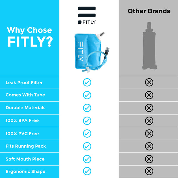 Fitly Soft Flask - 17 Oz (500 Ml) - Shrink As You Drink Soft Water Bottle For Hydration Pack - Folding Water Bottle For Running