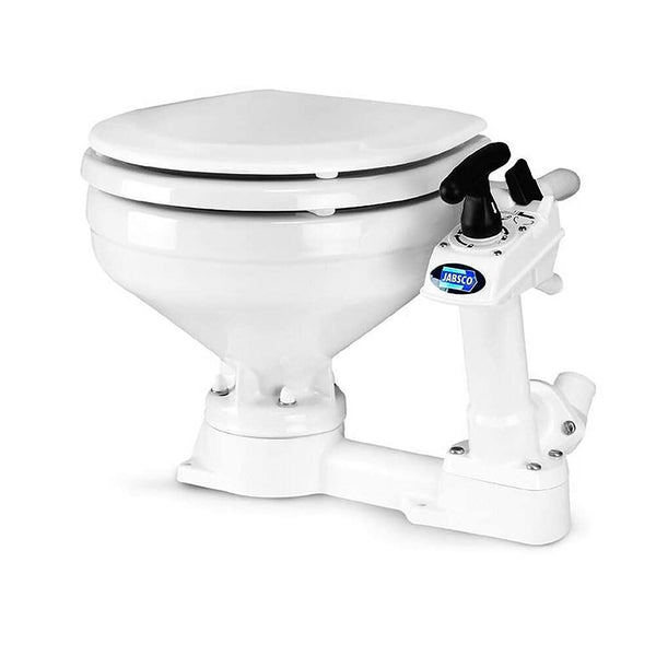 Popular worldwide for more than two decades, Jabscos sturdy manual toilet ensures peace of mind thanks to the intuitive, simple to use Twist n Lock feature. It provides protection against siphonic flooding and waste backflow with one easy, 90 turn of a handle. The toilet is available with a regular or compact size bowl.