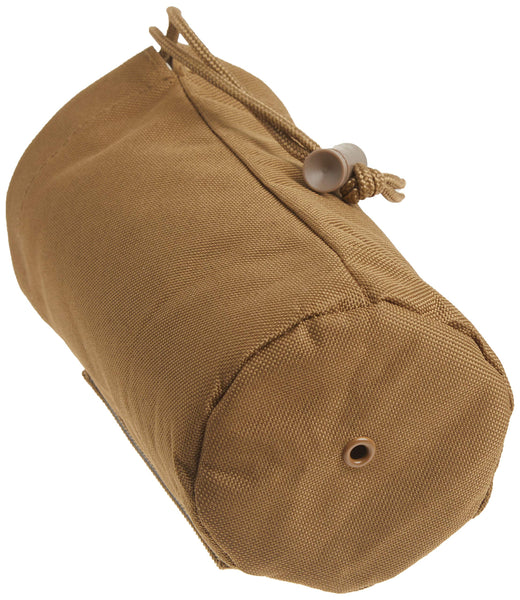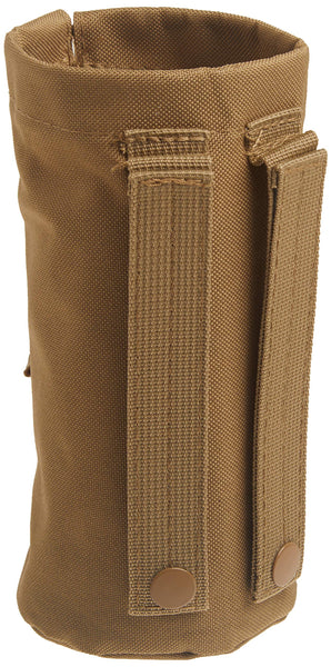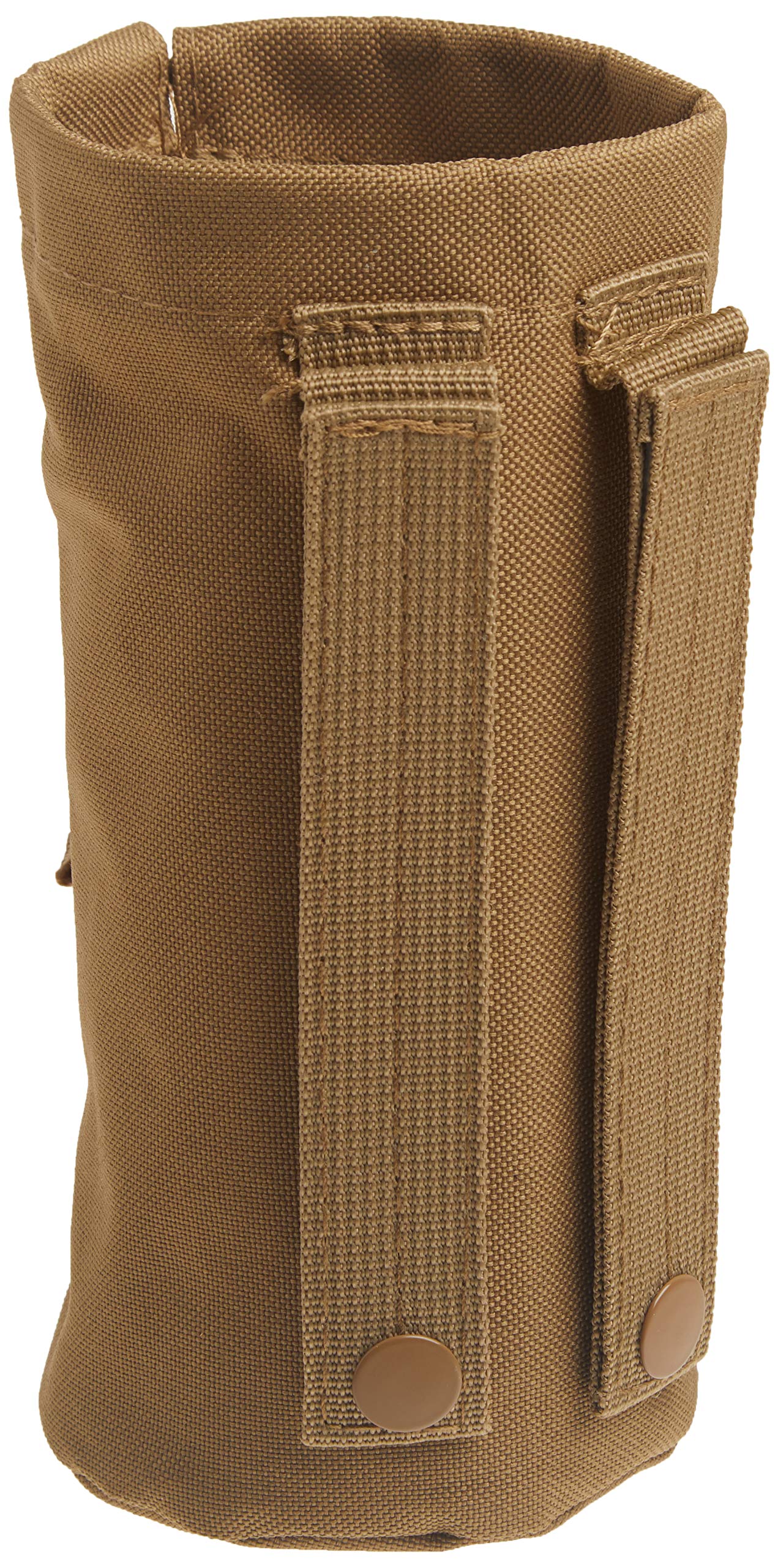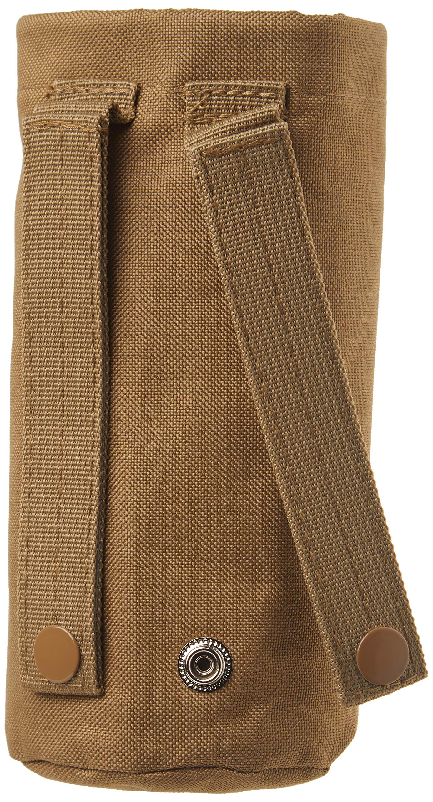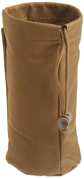 The Vism MOLLE hydration bottle pouch will hold most standard sized water bottles from 8 fluid oz up to 33.8 fluid oz (1L) in size. Features: - two Pal straps with metal thumb snaps allow you to attach the pouch to MOLLE compatible gear or even around a standard belt. - draw cord on top with spring loaded plastic barrel, to cinch the top of the hydration bottle pouch around Drinking bottle to keep it secured - bottle compartment size: 8.0''Height x 3.25'' diameter pouch - the pouch can be used to carry other types of gear besides water bottles. The pouch can be used to carry extra ammo, magazines, radios, point and shoot cameras, GPS, cell phones, or any other miscellaneous items that can fit inside the pouch - drain grommet located on the bottom of the bottle compartment. Color: tan