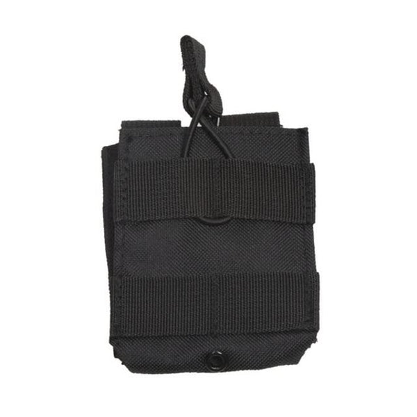 - Q: Does this pouch have any additional features? A: Yes, it includes an adjustable bungee cord for securing the magazine, as well as a metal drain grommet to allow any moisture to escape.