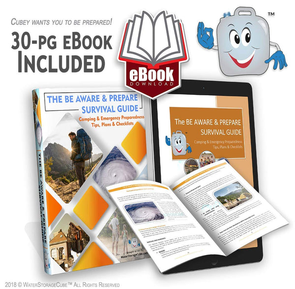 B>BE PREPAREDB>BR>- Be able to quicklyeasily store all the water you need BR>- Outdoors: Household, garden, camping, RV, hunting, hiking, picnic, BBQs, sports, events, parties BR>- EmergencyDisaster Preparedness: Hurricane, tornedo, fire, flood, drought etc BR>- Everyday uses like dispense right from the fridgeBR>- Auto emergency water containerBR>- Outdoor Handwashing stations at eventsBR>BR>B>WHY WATERSTORAgEcUBEB>BR>- Food Safe No BPA PVc or DEHP Odorless tasteless food safeBR>- Environmentally friendlyBR>- Leak-free lidspigot with easy onoff and quick controllable flowBR>- Single piece molded seamless constructionBR> - Lightweight, compact, portable, sturdy, convenientBR>- Strong can withstand a 4A drop or heavy pressureBR>- Reusable Dry completely, fold and store BR>BR>B>A SATISFIED cUSTOMER IS A LIFELONg cUSTOMERB>BR>- We are here to help If you ever have questions or concerns, contact us anytime 247BR>- Within 30 days if youre not satisfied, simply return for exchange or refund BR>BR>B>TIP: TO ENSURE FASTEST WATERFLOWB> ( Make sure Spigot is pushed in) BR> Remove LID and view bottom of the cap to make sure the water opening is fully visible when in the OPEN position If opening is partially covered, simply push spigot completely in BR>(It also comes apart for easy cleaning) BR>BR>B>THANK-YOU EBOOK INcLUDEDB>BR> Our mascot cubey wants you to Be Prepared and includes a download to our 30pg eBook: BR>B>AThe Be Aware & Prepare Survival guide: camping & emergency preparedness Tips, Plans & checklistsAB>BR>BR>B>SIZEWEIgHT:B>BR> 53gal: Folded 102x94x25 Opened 114x114132 Weight 104ozBR>26gal: Folded 79x79x24 Opened 88x88x106 Weight 64ozBR> 13gal: Folded 69x69x24 Opened 71x71x88 Weight 52ozBR>BR>B>Material:B> Food grade LDPE plasticBR>B>color:B> Transparent BR>B>Temperature:B> -4 TO 127BR>