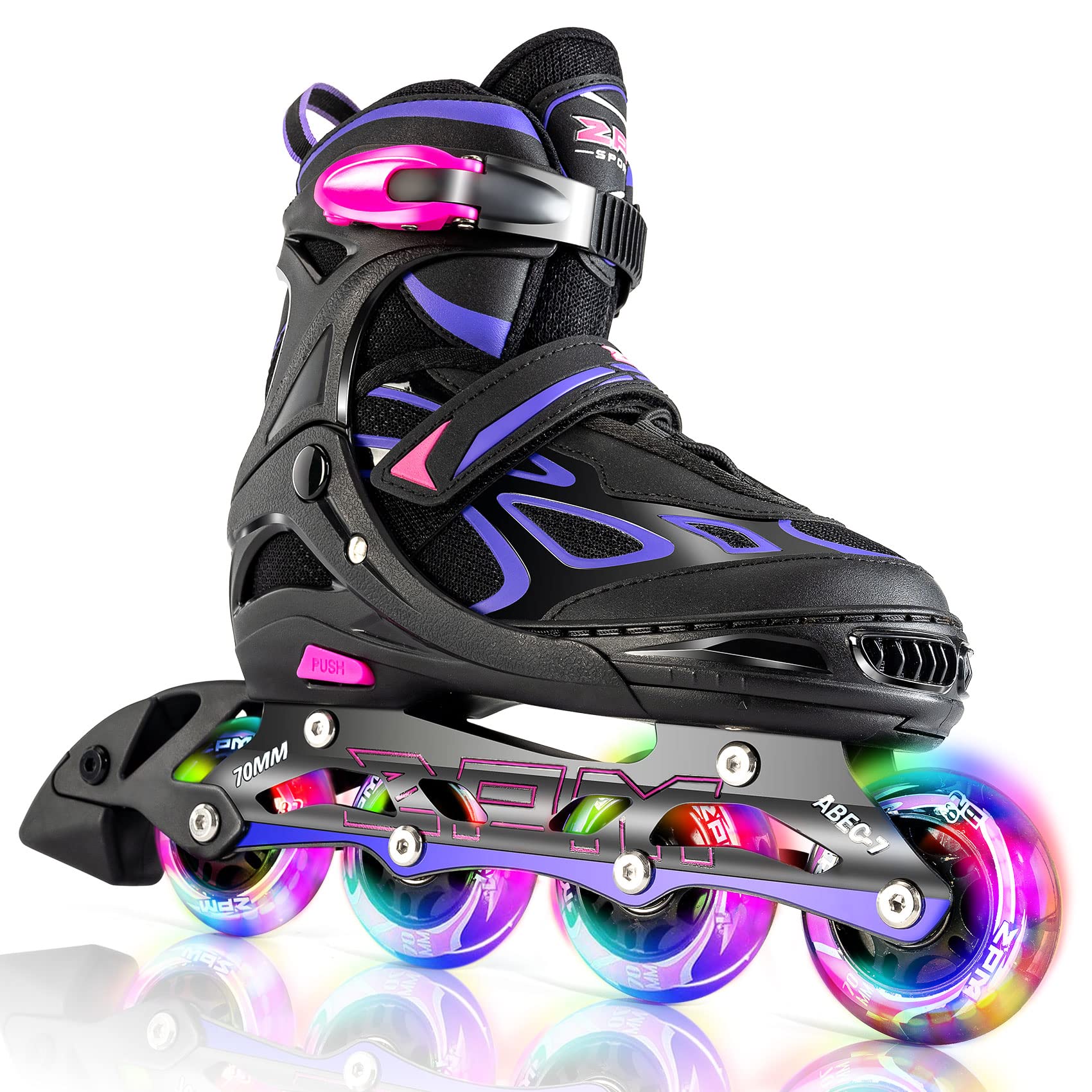 Your Brand New Inline Skates As the summer is coming, get your girls a perfect pair of skates to feel the wind blow on these sun-filled days. The 2pm Vinal inline skates is an excellent choice for kids who want to get into skating, and you will love them for their great value. With our special light up bonus, she can not only have fun during the daytime, but also become a shining star at night! She will love our inline skates that are sure to keep her feet comfortable as she learns the bacis and makes progress. The skates will help her hone the skills and gain confidence in the stylish design and encourage her to pick up the skills continually to become an awesome skater. This pair is simply the best for any kid who loves spending time outdoors in the summertime. Don't hesitate! It is sure to exceed your little one's expectation! Pay attention Size We highly suggest choosing the size according to your kid's foot length, for size may vary among different brands. Please check the size again with our size chart before ordering.Specification Overview and Key Features along with Size Chart are offered in product images. Instruction Please read through the instructions on the sides of the box before open, and manual for further reference. Before Trying 1.Wiggle each wheel to check axle tightness. If bolts/screws that secure the wheels are loose, tighten them with the Allen wrench included in the box. 2.Wear one pair of athletic socks. Skates should fit securely without being too tight or uncomfortable. Service We truly care about your customer experience and, your product experience. We are 100% dedicated to your complete satisfaction. If you have any question or problem with our service or products, please feel free to contact us. Our 2pm customer support team is standing by to assist you. :)