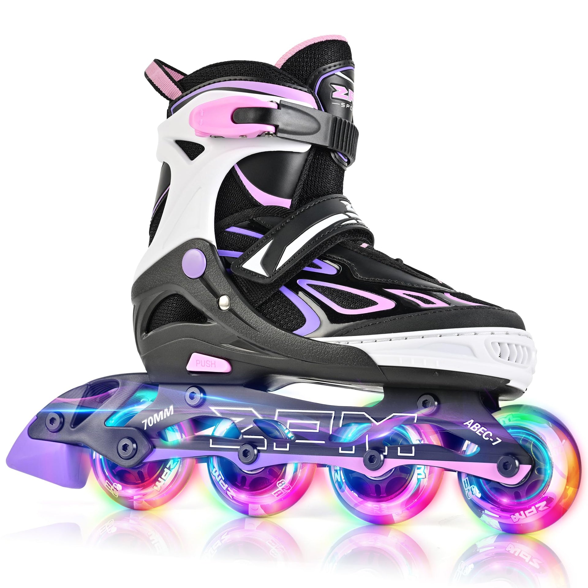 Your Brand New Inline Skates As the summer is coming, get your girls a perfect pair of skates to feel the wind blow on these sun-filled days. The 2pm Vinal inline skates is an excellent choice for kids who want to get into skating, and you will love them for their great value. With our special light up bonus, she can not only have fun during the daytime, but also become a shining star at night! She will love our inline skates that are sure to keep her feet comfortable as she learns the bacis and makes progress. The skates will help her hone the skills and gain confidence in the stylish design and encourage her to pick up the skills continually to become an awesome skater. This pair is simply the best for any kid who loves spending time outdoors in the summertime. Dont hesitate! It is sure to exceed your little ones expectation! Pay attention Size We highly suggest choosing the size according to your kids foot length, for size may vary among different brands. Please check the size again with our size chart before ordering.Specification Overview and Key Features along with Size Chart are offered in product images. Instruction Please read through the instructions on the sides of the box before open, and manual for further reference. Before Trying 1.Wiggle each wheel to check axle tightness. If bolts/screws that secure the wheels are loose, tighten them with the Allen wrench included in the box. 2.Wear one pair of athletic socks. Skates should fit securely without being too tight or uncomfortable. Service We truly care about your customer experience and, your product experience. We are 100% dedicated to your complete satisfaction. If you have any question or problem with our service or products, please feel free to contact us. Our 2pm customer support team is standing by to assist you. :)