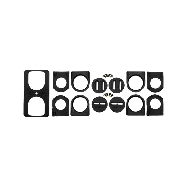 Includes 4 pucks, 4 puck gaskets, 2 in-line slot discs, 2 parallel slot discs, 8 - M6 x 10.7mm truss-head screws, and alignment guide.