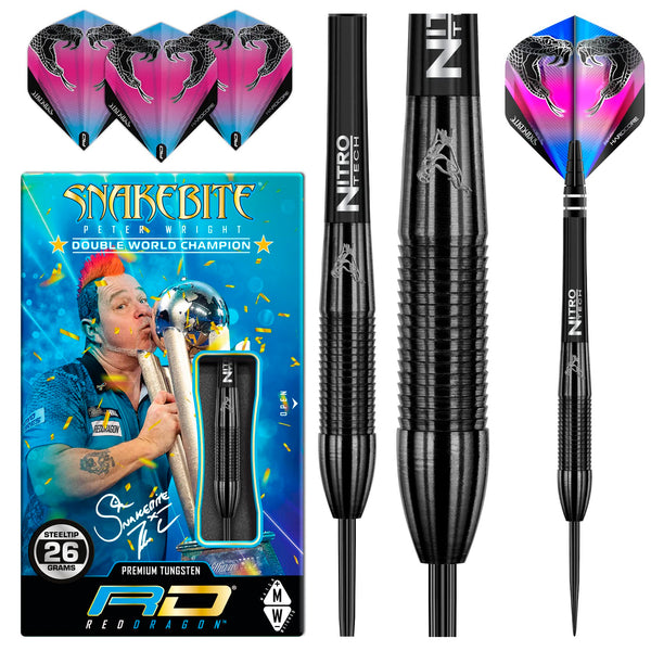 Red Dragon Peter Wright Snakebite 3: 26G Tungsten Darts Set With Flights And Stems