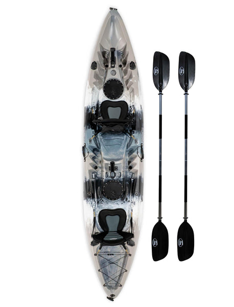 Bkc Tk219 12.5-Foot Tandem 2 Or 3 Person Sit On Top Fishing Kayak W/Padded Seats And Paddles (Grey Camo)
