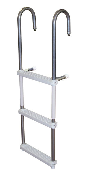 3-Step Pontoon Swim Ladder- can be mounted at side gate or transom with the included flush mount system; installed vinyl sleeve protects the pontoons; Folds up for easy storage.