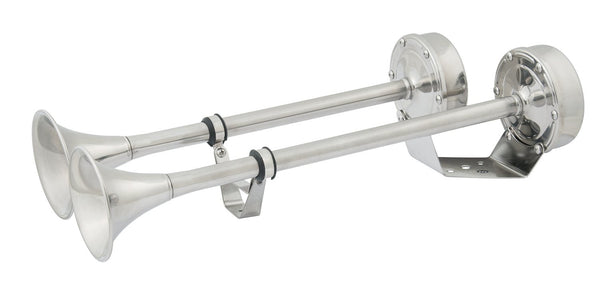Marinco is the leading supplier of horns to the marine industry, with over fifty years of experience in designing and manufacturing sound devices specifically for use in harsh marine environments. Stainless steel is used for all critical components such as trumpets, motor cover, diaphragms, assembly and mounting hardware. In the case of the xlp trumpet horns, the horn is given extra protection through the complete over-molding of the internal motor cover housing. It is this extra process that provides the added protection needed to back up the five-year warranty.