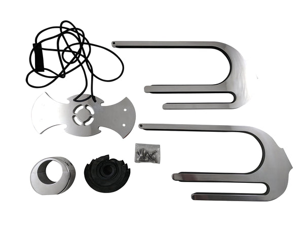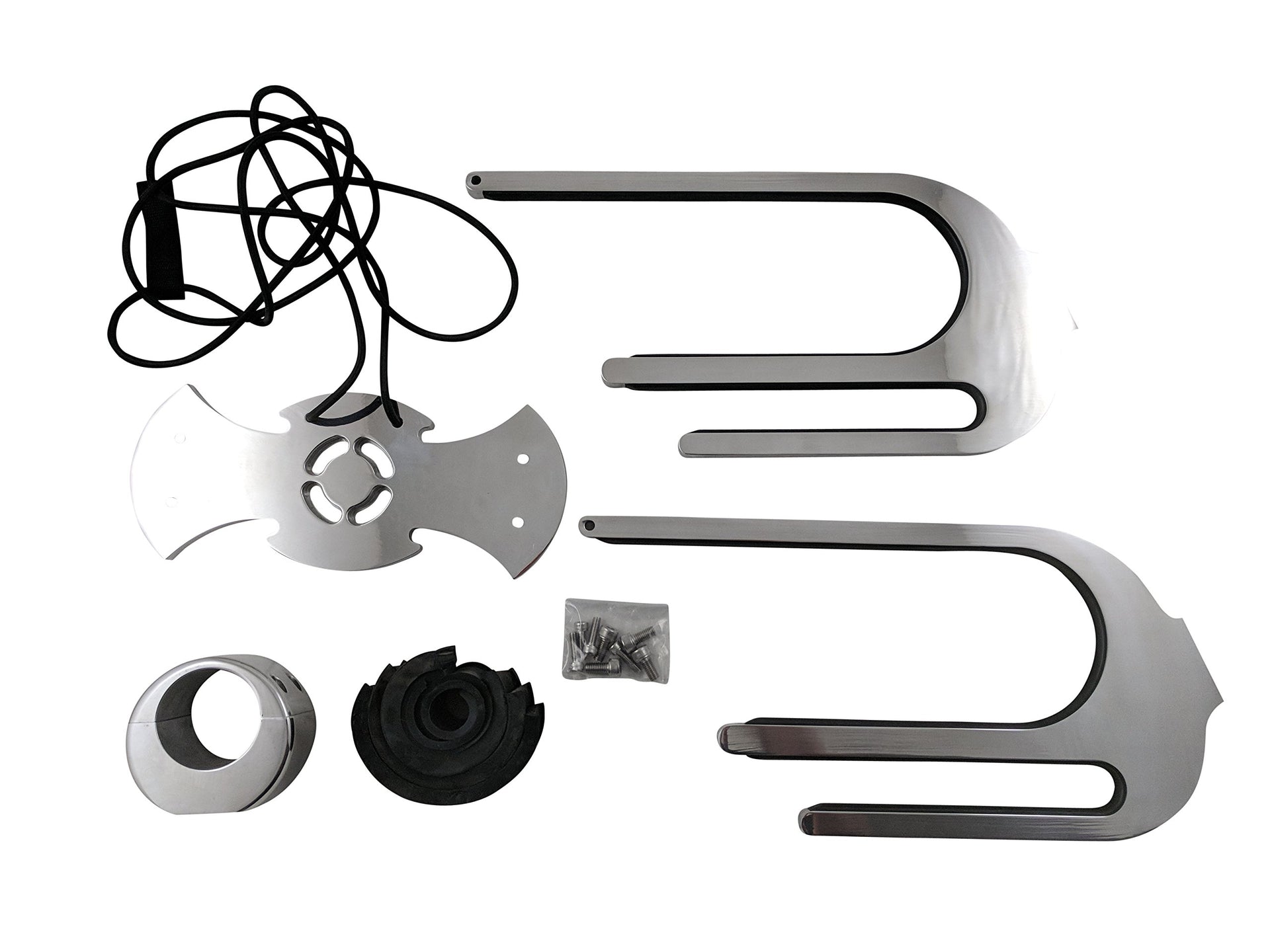 Krypt Kneeboard and Wakeboard combo tower racks feature a unique combo design that gets both boards off the floor. We construct this rack with cast 6061 aircraft grade aluminum, and double polish our racks for a deep mirror shine. Our fingers feature a large center finger to minimize board rattling and slapping together when on the go. Rubber bumper inserts are inside the fingers and bungie straps are included for complete board protection. The clamp will rotate nearly 360 degrees to help adjust the rack to a horizontal level This rack will fit all horizontal and vertical tubes and adjust to nearly any angle in between. Kneeboard finger opening is 4.15'', and wakeboard finger opening is 1 3/8'' Features Tower Clamp Size Available: 1 3/4'', 1 7/8'', 2'', 2 1/4'', 2 3/8'', 2 1/2'' Double Polished 6061 Aluminum Clamp mount adjustable in nearly 360 degrees Fits both vertical and horizontal tower bars at virtually any angle Bungee cord for secure board fit Soft rubber inserts for secure tight board protection Gets your boards off your floor Secures 2 boards; 1 x kneeboard 1 x wakeboard
