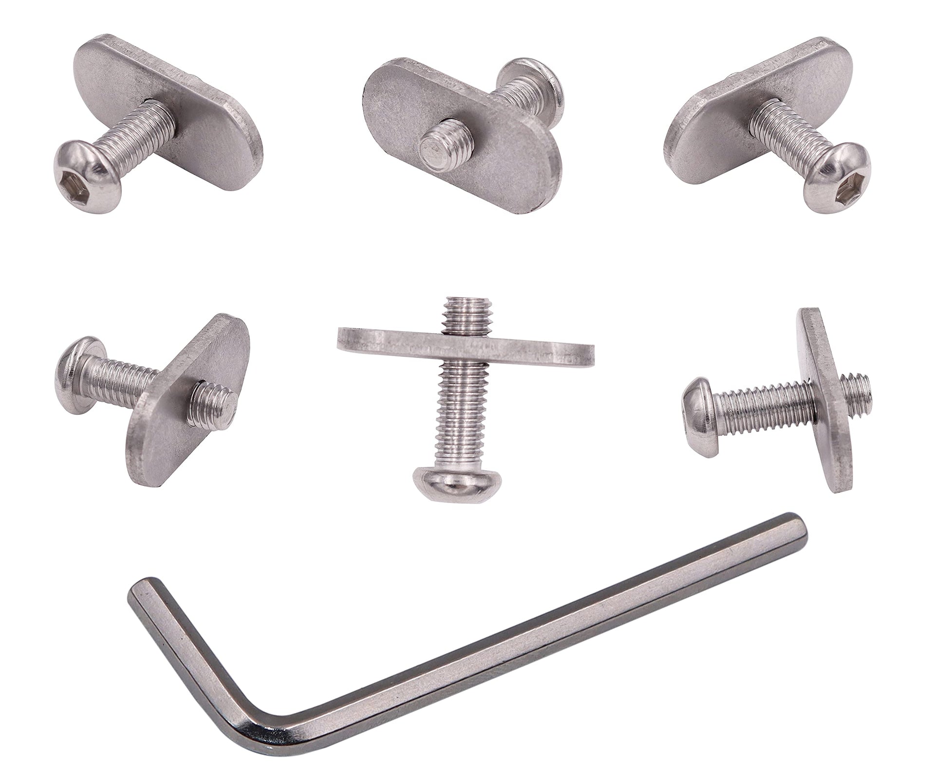 ?KAYAK TRACK SCREWS KITS?Package include 6 M6 Screw , 6 Track Nut and 1 Hexagon Tool. Nut size: 29 * 13 * 3mm (1.16 * 0.54 * 0.12in). Generally, 4 dicing pieces are sufficient on the guide rail, and the extra 2 pieces can be used as a spare. ?MATERIAL?304 stainless steel construction, rust and corrosion resistant. ?EASY TO INSTALL?Easy installations with Hexagon Tool. ?EXCELLENT REPLACEMENT? It is a perfect replacement kit for mounting accessories in the track system on kayaks, boats. ?WIDE APPLICATION?Almost universally fits any track system on boats. Mount any kayak accessories with this kit.