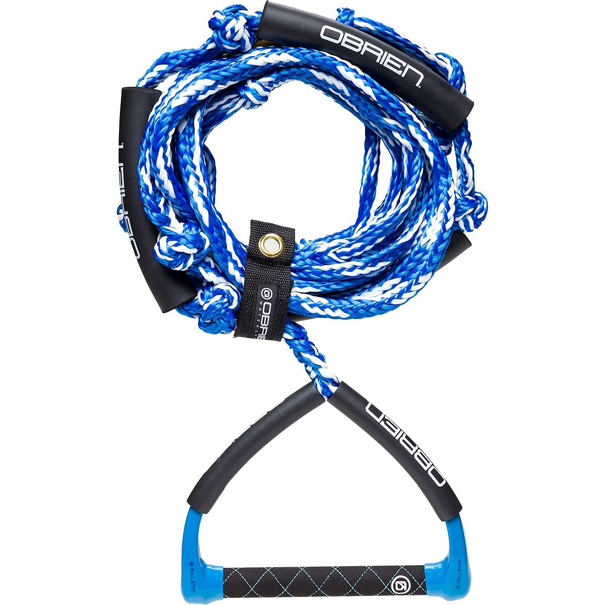 Diamond stitched microfiber suede grip. It is soft and tacky when wet for superior grip. The 10 wide aluminum core handle provides precision extruded for high strength and low weight. The Roll Stop arms eliminate handle roll for enhanced control. The rope has 3 EVA floats on the mainline.