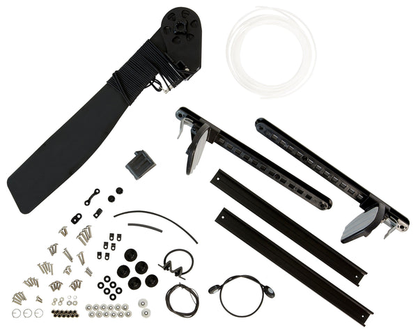 - Q: What is included in the rudder kit package? A: The kit includes a large solo size rudder assembly, footbraces, cables, tubes, and all necessary hardware to facilitate installation on both rudder-ready and non-rudder ready kayaks.
