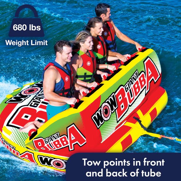 Wow Sports - Giant Bubba Towable Tube For Boating - 1-4 Person 680 Lbs Capacity - Inflatable Boat Tube For Water Sports - Youth