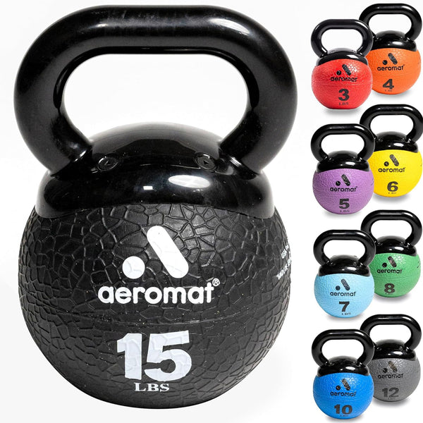 Aeromat Elite Mini Kettlebell Medicine Ball - 15 Lb Kettlebell Weight Balls For Exercise, 6'' Dia Weighted Exercise Ball, Streng