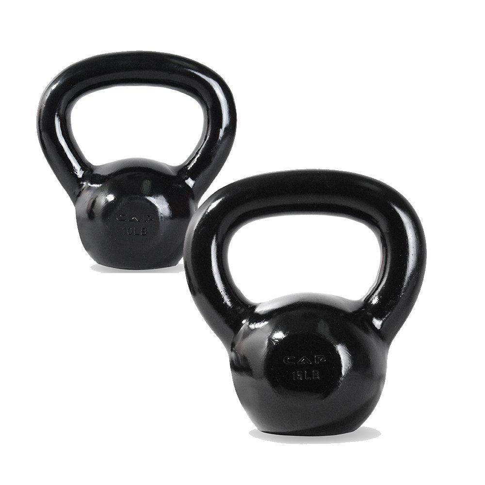 Kettlebells are used for swings, deadlifts, squats, lifting, get-ups & snatches to workout & increase strength of many muscle groups & body parts including biceps, shoulders, legs, & more. Set includes 10 & 15 lb Kettlebells.